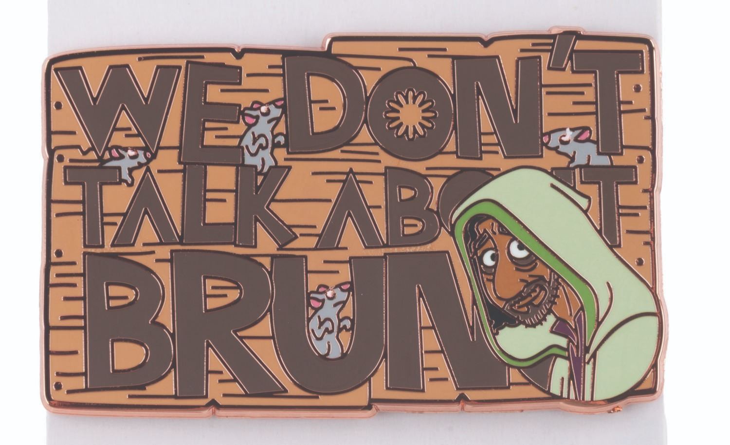 (Disney, 2022) A “We Don’t Talk About Bruno” pin from “Encanto.” Measuring 1” x 2”, the pin is in fine condition on the original card.