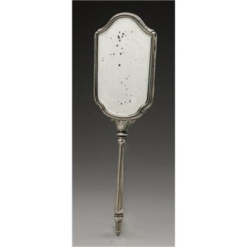<B>An American Silver Hand Mirror</B></I><BR><B>Webster Co., North Attleboro, MA, Early Twentieth Century</B></I><BR><BR>Hallmark to the front with <I>STERLING</B></I><BR>14.5in. long x 4.1in. wide1 Items <BR><BR><B>Condition Report:</B> Normal signs of wear as appropriate with age; the silver backing on the glass is slightly deteriorated; small dent to the edge.