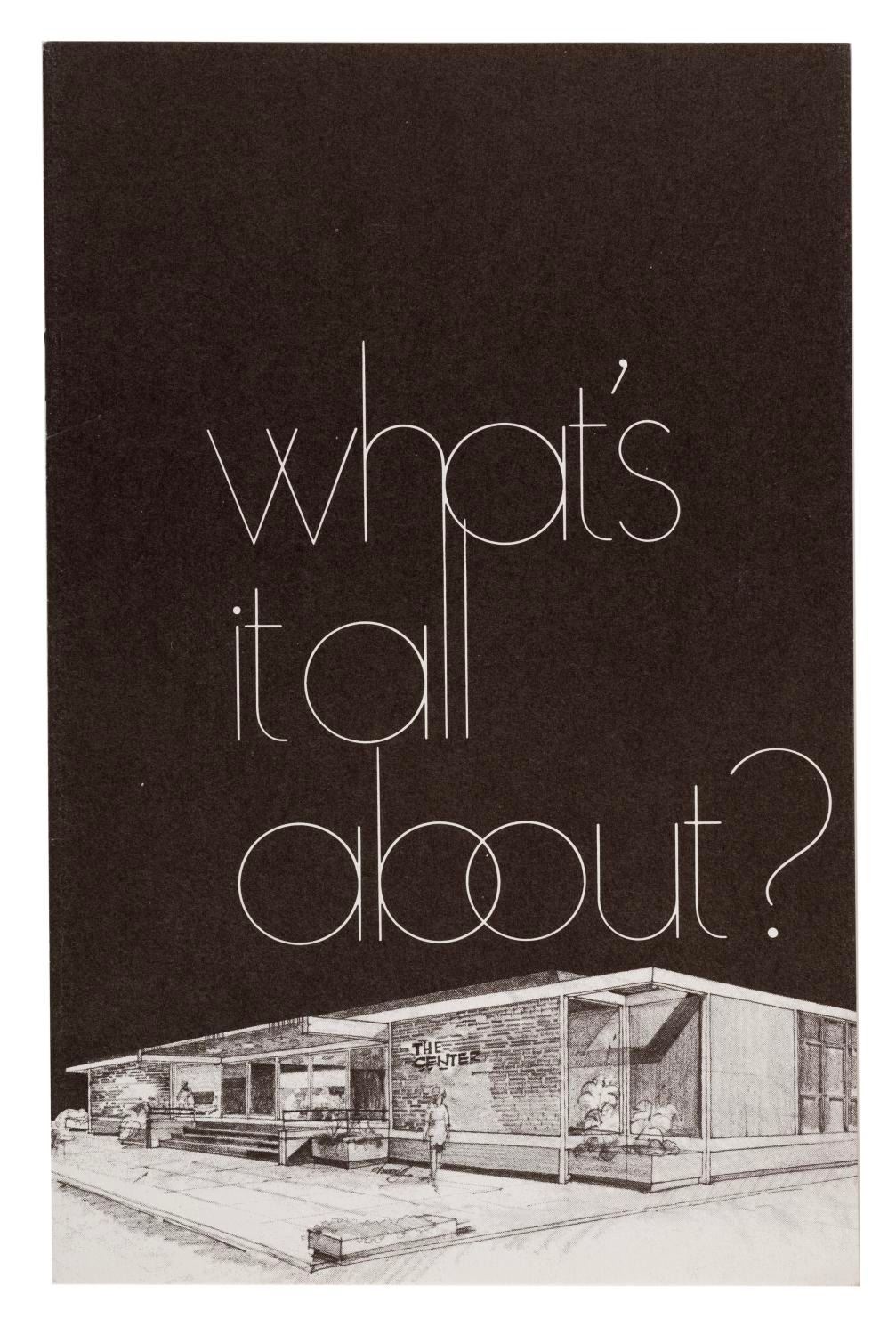 (Disneyland, 1970s) A rare cast member booklet titled "What's It All About?" created by Disney University to give an overview of a newly built employee center on the Disneyland property. Measuring 5.5" x 8.5", the booklet is in very good condition with light handling wear, including some creasing near the spine.