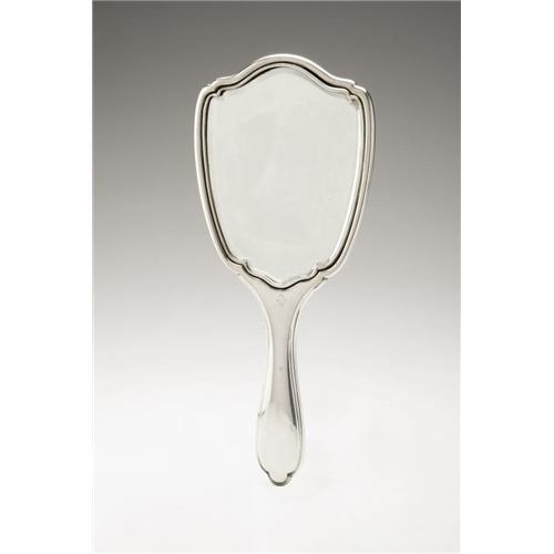 <B>An American Silver Hand Mirror</B></I><BR><B>Whiting Mfg. Co., Providence, RI, 1914</B></I><BR><BR>Script monogram to the reverse <I>BDW,</B></I> hallmark to the front with <I>STERLING 7527</B></I><BR>11in. long x 4.7in. wide