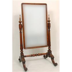 A William IV Mahogany Cheval Mirror, on turned supports, and splayed scrolling legs, 84 cm See illu