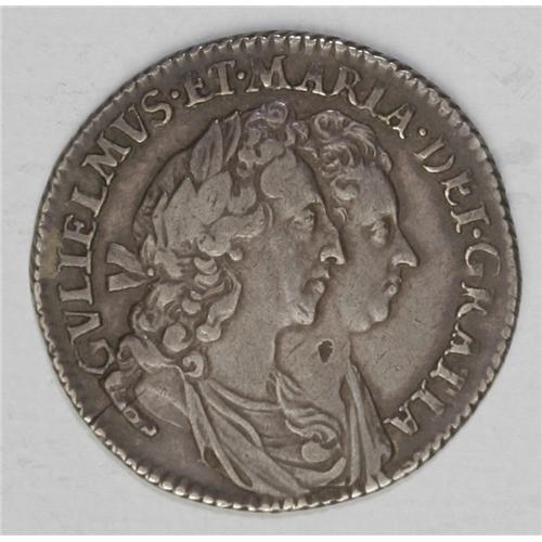 A William and Mary pair as follows: Sixpence 1693, S-34