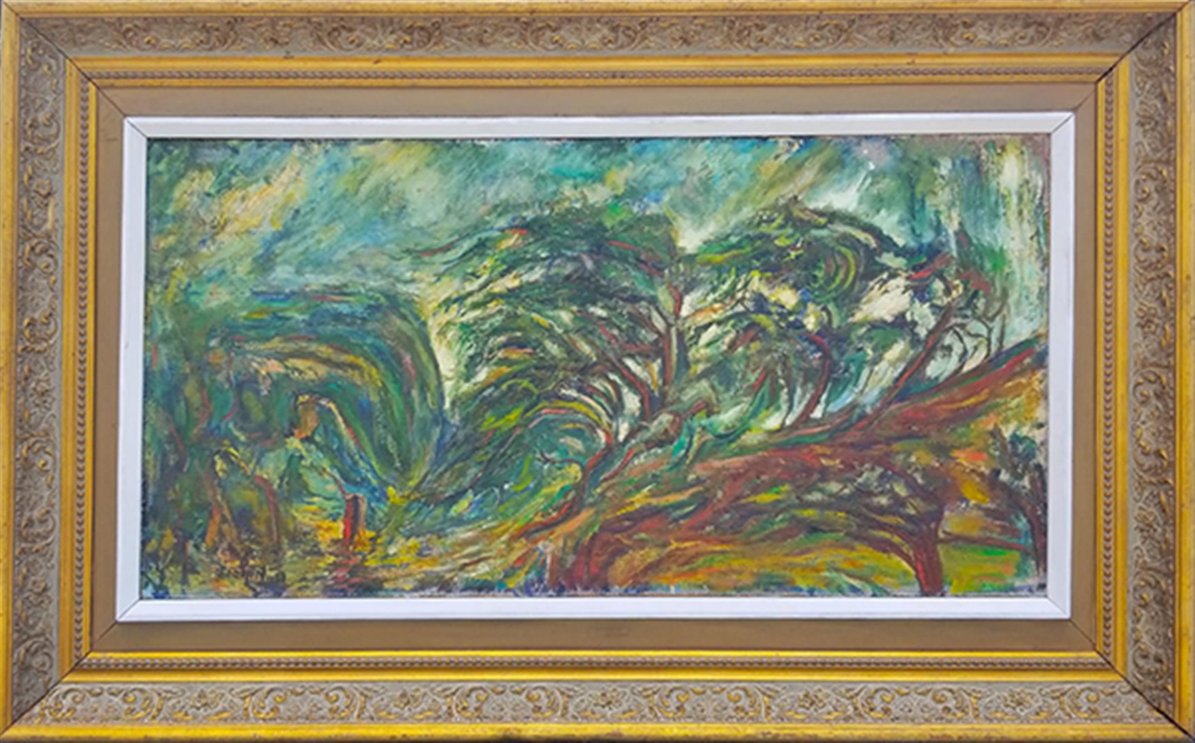 Exquisite original oil on burlap. Hand signed by artist. Artwork 14x34, framed approximately 20x40.