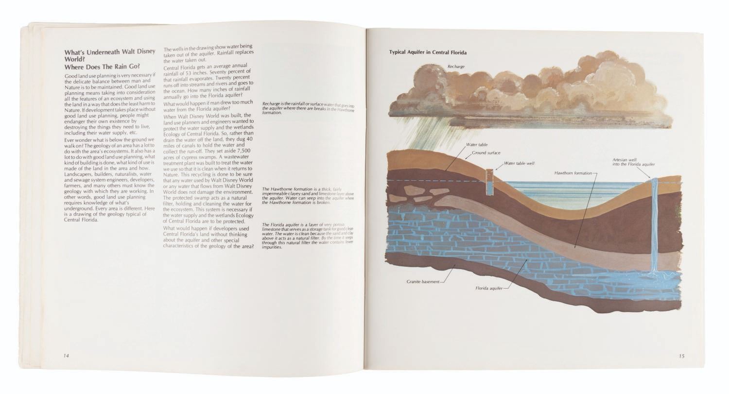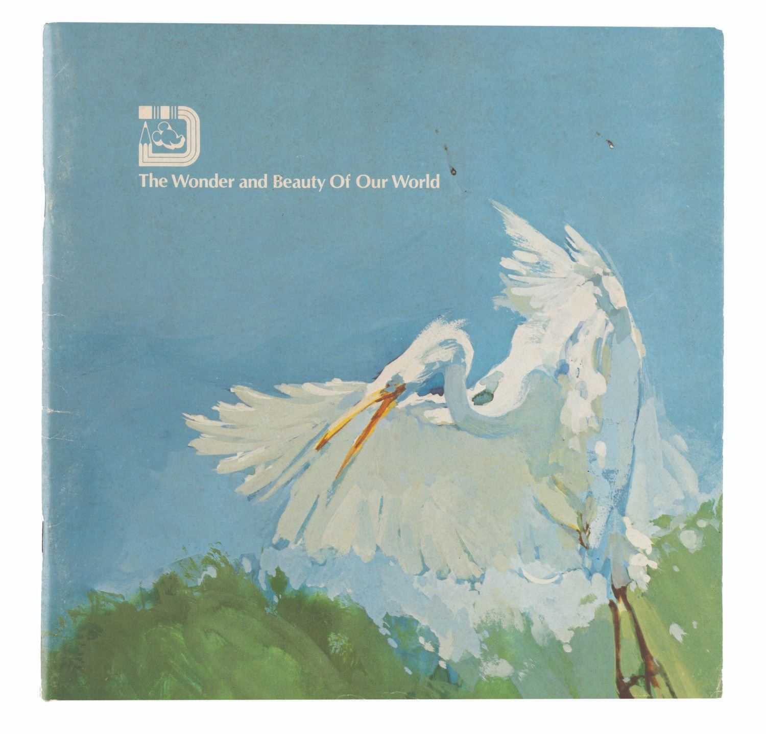 (Walt Disney World, 1979) An educational activity book titled The Wonder and Beauty of Our World, created by Disney University. Measuring 10" x 10", the 60-page book is in good condition with edge wear, minor wear, small stains, scuffs, and discoloration to the front and back of the cover.