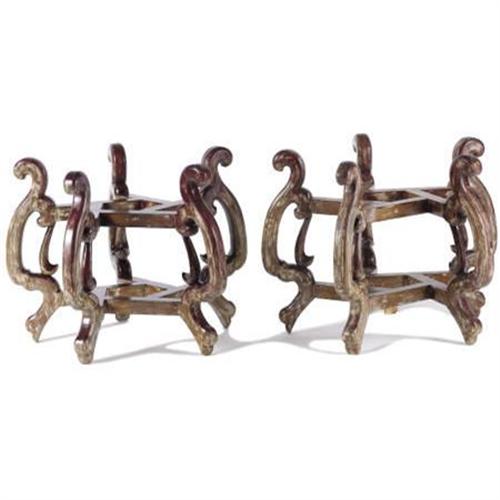 <B>A Wooden Jardiniere Base<BR></B></I>Unknown maker<BR>Twentieth Century<BR>The carved wooden base with a red stain<BR>Unmarked<BR>12 inches high x 14 inches wide<BR><BR><b>Shipping:</b> Requires 3rd Party Shipping (<a target="_blank" href="http://www.heritageauctions.com/common/shipping.php">view shipping information</a>)