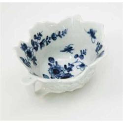 A Worcester leaf shaped pickle dish, painted with leaves in underglaze blue, painter's mark, circa 1758, 3.25in. £300-400