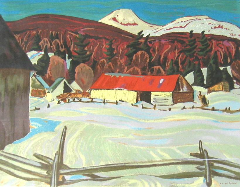 ALEXANDER YOUNG (A.Y.) JACKSON RCA, OSA, CGP (Canadian 1882 - 1974 ) Red Roof Barn in Winter Serigraph 21" x 27" (53.34 x 68.58cm.) Signed in plate lower right