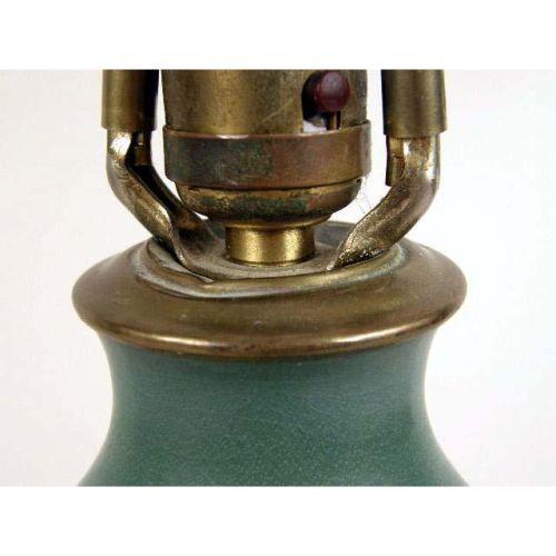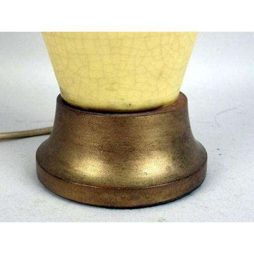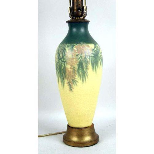 A YELLOW AND GREEN WISTERIA PATTERN AMERICAN ART POTTERY VASE<BR><BR>Fitted as a lamp, craquelure, 14"h