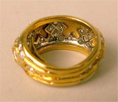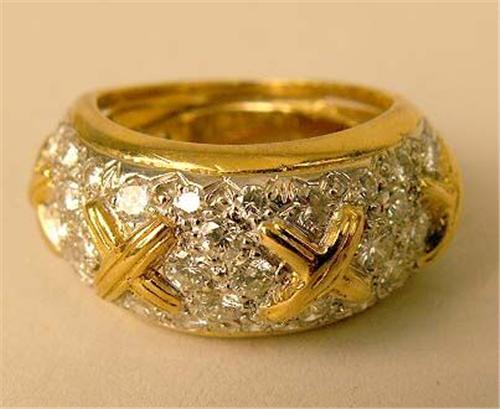 X decoration, three-quarter way set with round cut diamonds, tapering shaft.