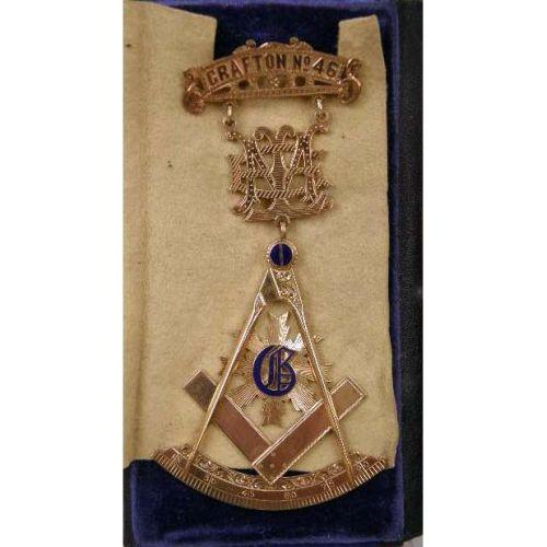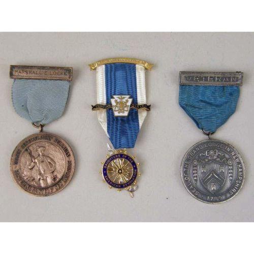 A YELLOW GOLD DAUGHTERS OF THE AMERICAN REVOLUTION PIN AND TWO MASONIC MEDALS<BR><BR>With Masonic and Knights Templar documents and a red felt fez 6 pieces