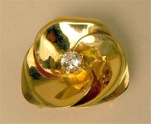Set with one near colorless round cubic zirconia, approximately 7mm dia.