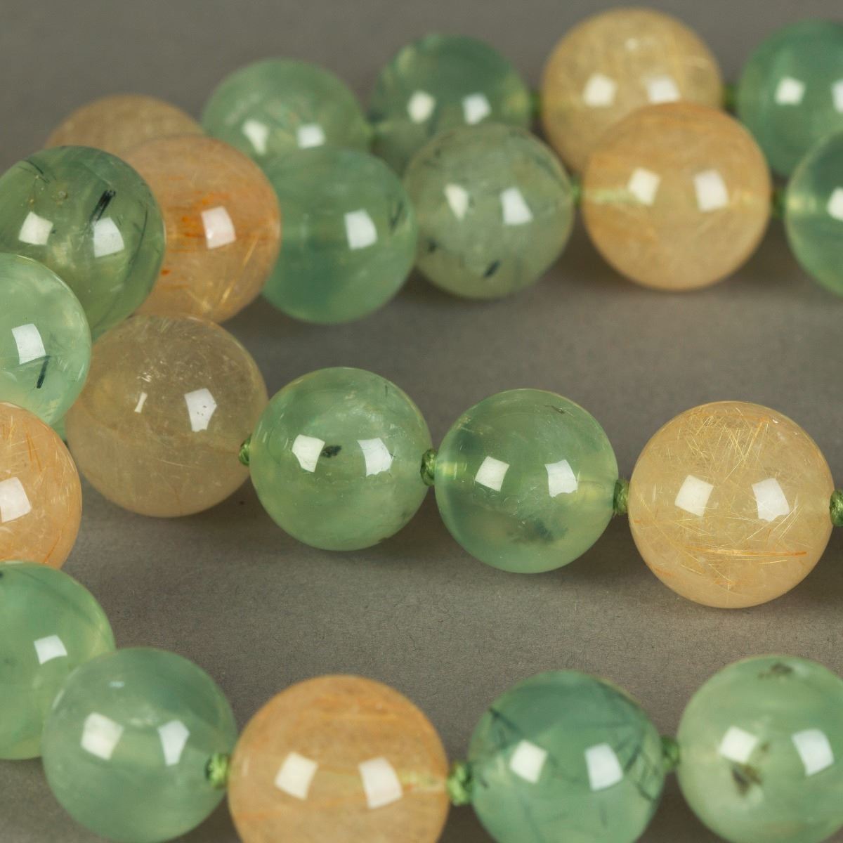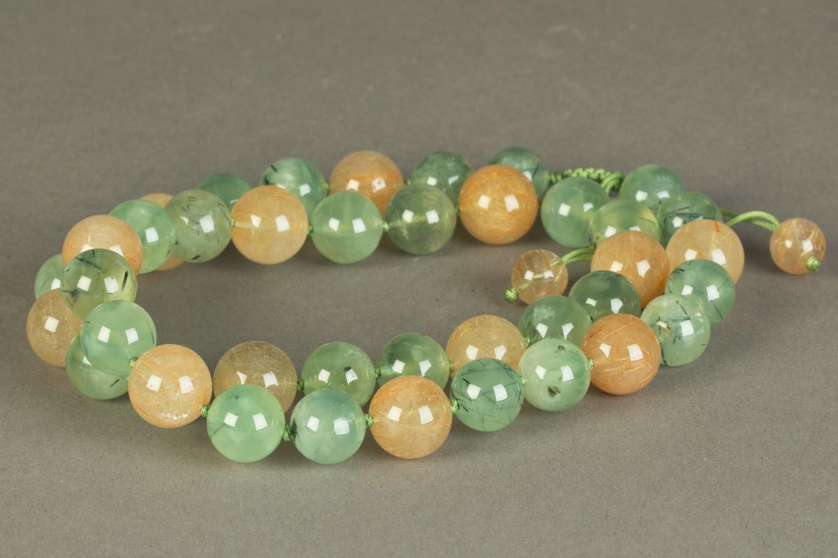 A strand of graduate yellow green quartz-beaded necklace. Length 14" x 2, Max Bead Diameter 0.5"