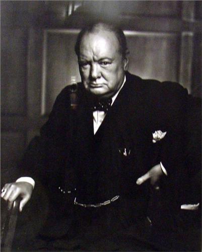 A YOUSEF KARSH SILVER GELATIN PRINT OF WINSTON CHURCHILL; Signed ll. Y. Karsh in black ink, 20" x 16", matted & framed