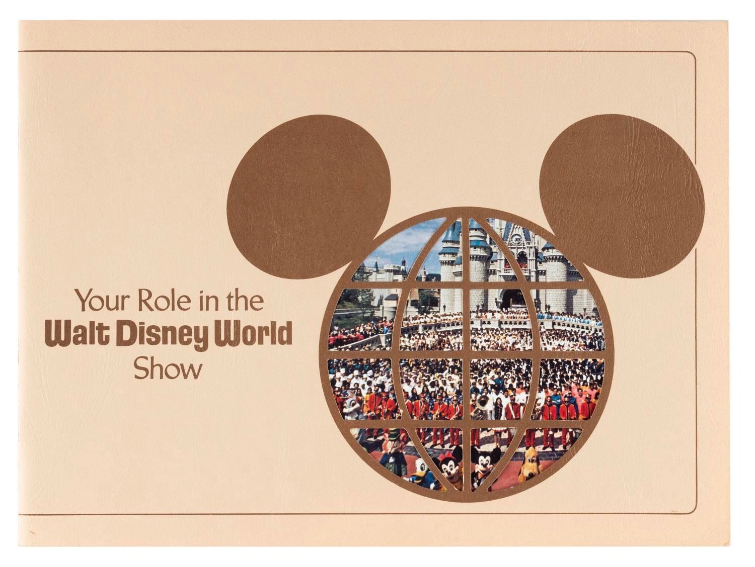 (Walt Disney World, 1975) A Your Role in the Walt Disney World Show booklet given to new Cast Members at the Florida Parks, providing a brief history of the company and the Guest experience. Measuring 8.5” x 11.5”, the booklet is in very good condition with light creases and wear.