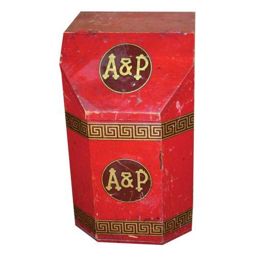 A and P Wood Store Bin. Original paint, very good condition. 18 X 30 X 18 inches.