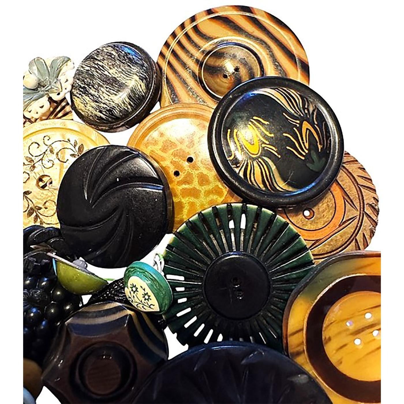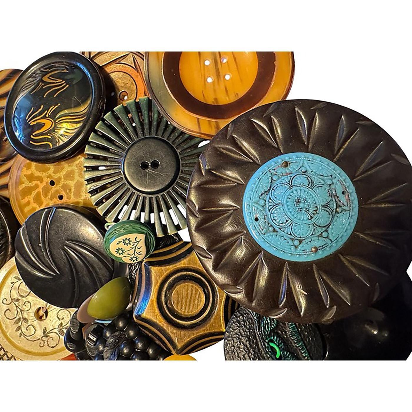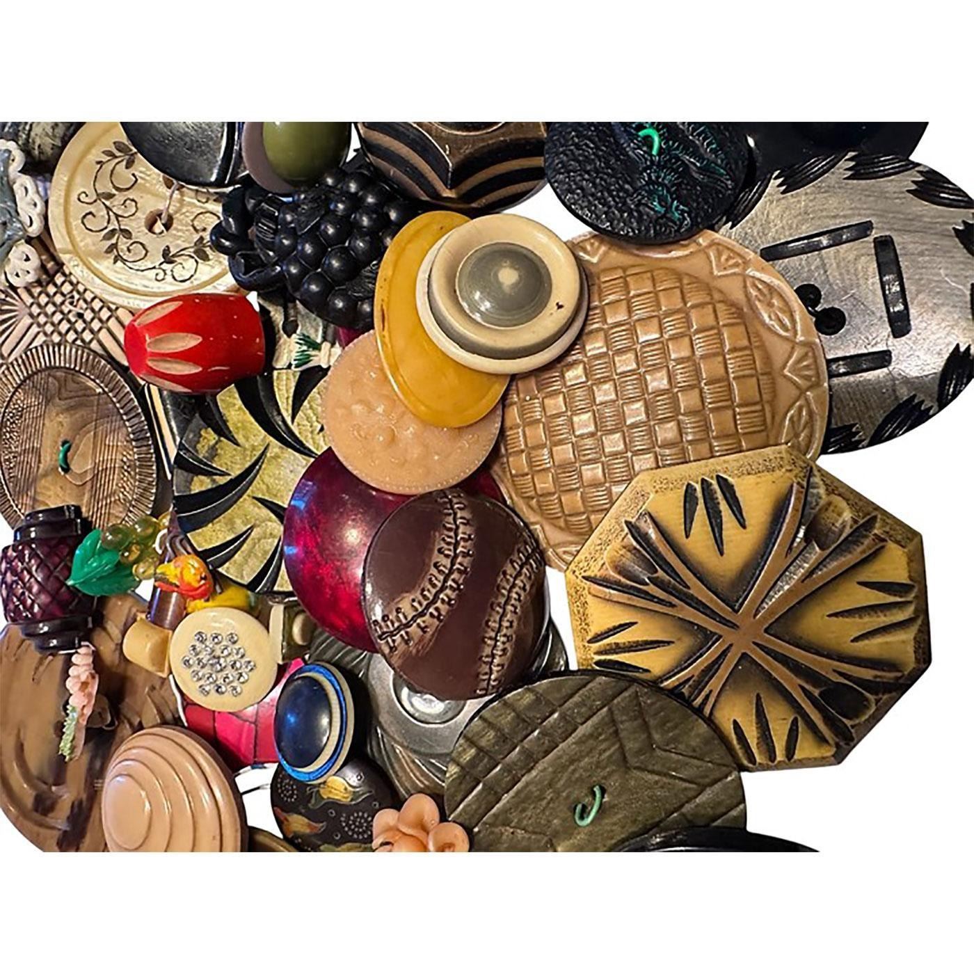 A large assortement of assorted celluloid style buttons. This bag lot includes glass in casein or celluloid, over 2" examples, cookies, tight tops, glows, realistics and more.