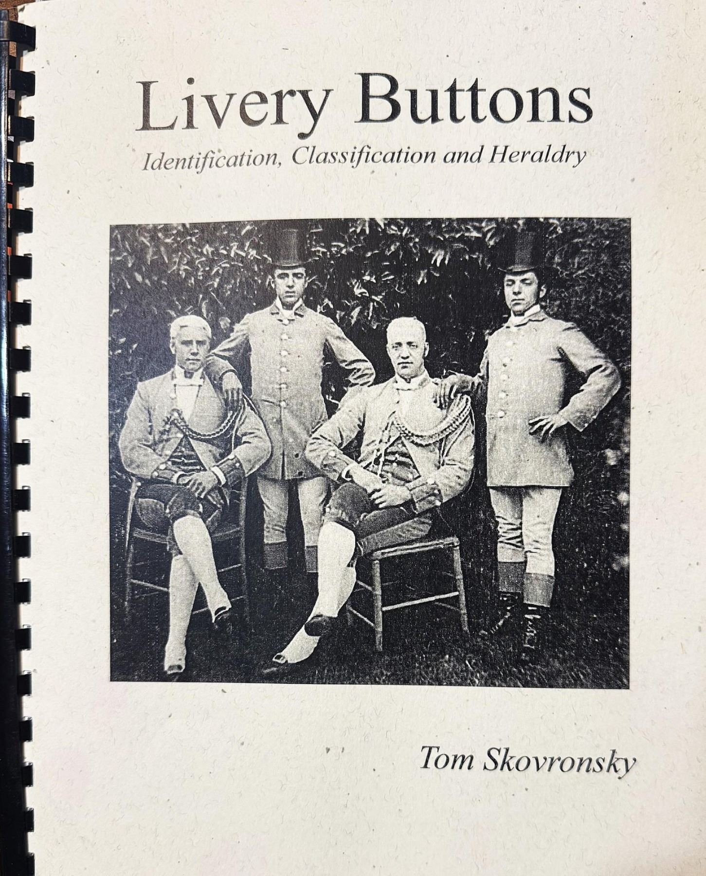 1 spiral bound copy of Tom Skvornsky's detailed book. If you don?t have this book in your library, you should. Tom Skvornsky of Washington state compiled this informative and detail book on Livery buttons ,any years ago and it is an invaluable tool. Tom's picture is on the back.