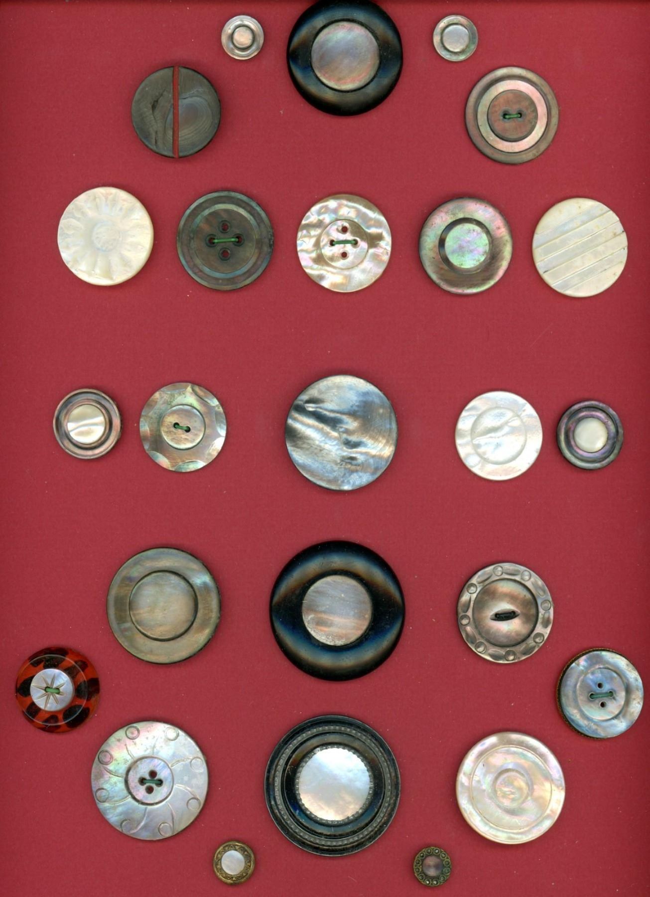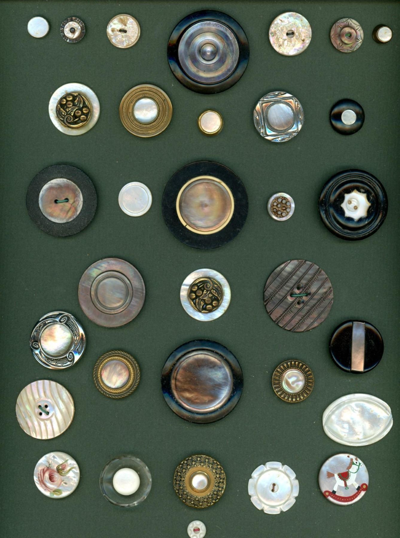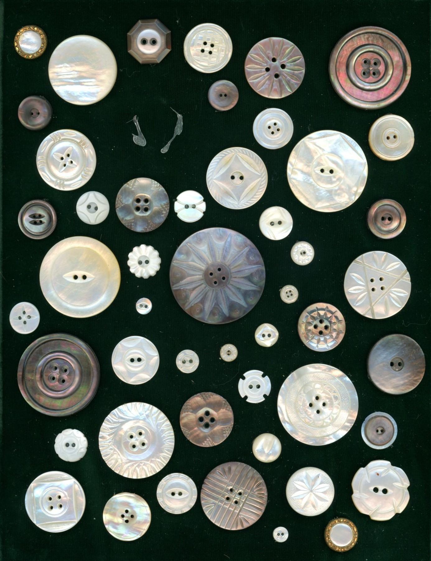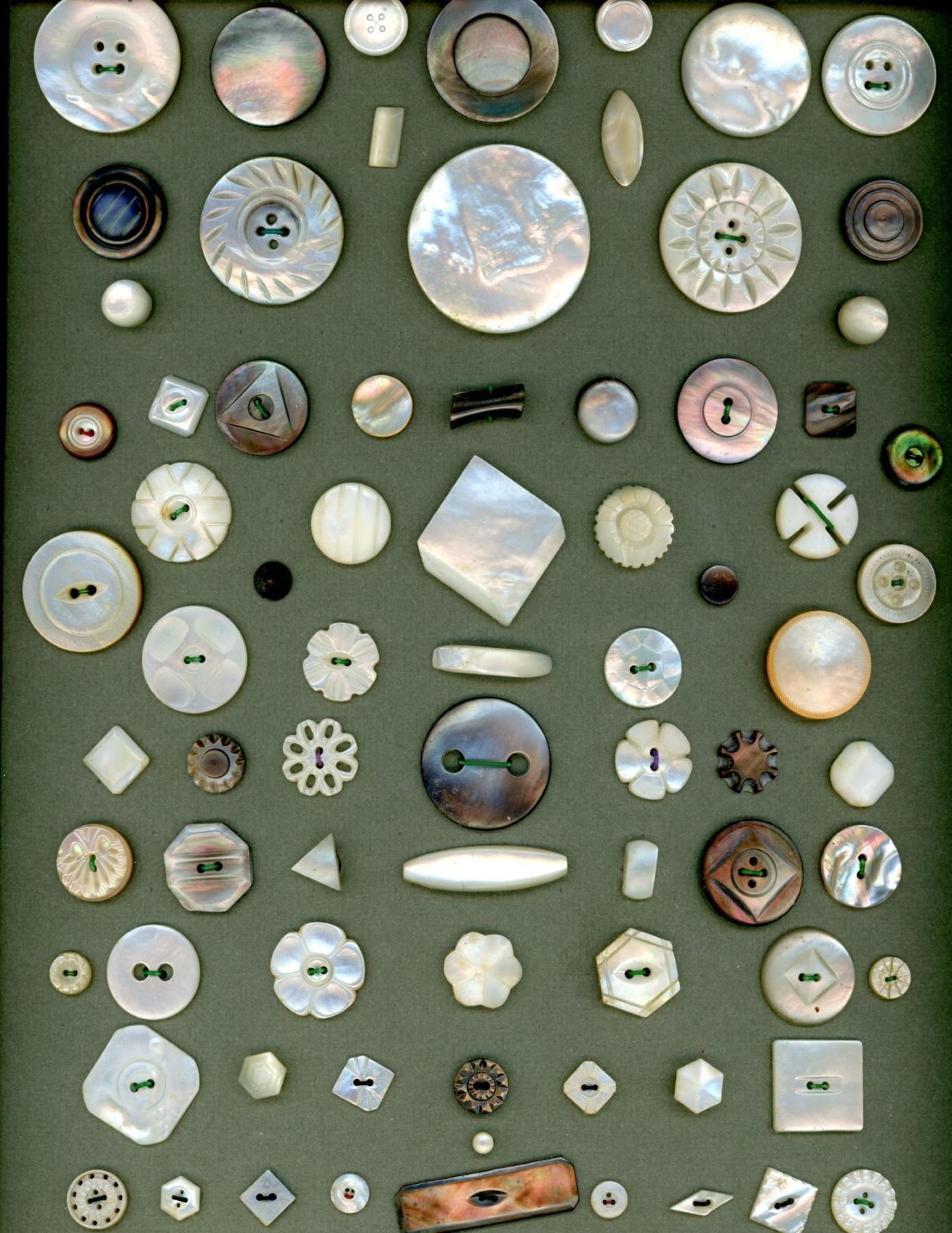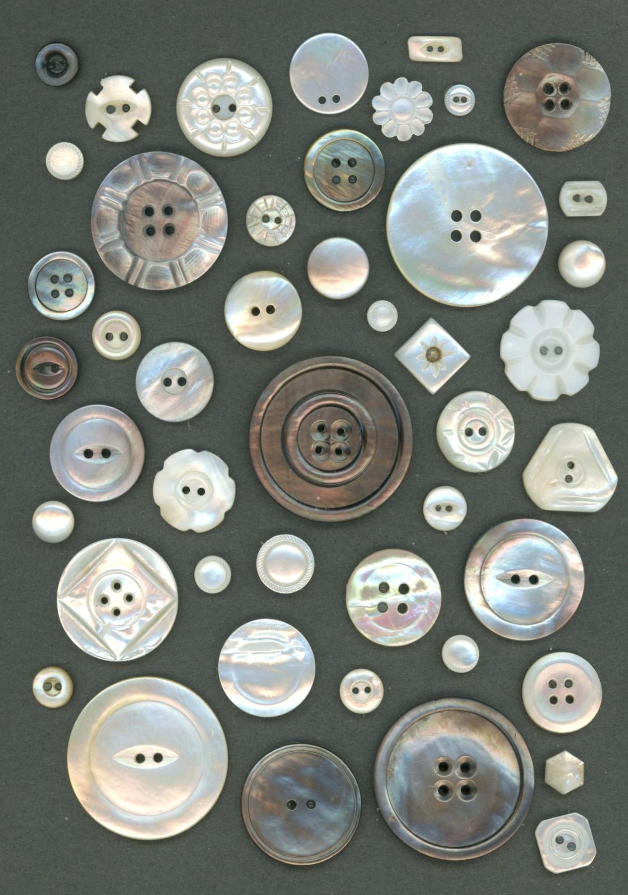 6 Cards of an array of assorted shell examples. Here is a lot chocked full of a plethora of mostly pearl buttons for the collector and the creator. DON?T pass this one up its really good.
