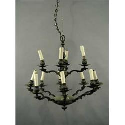 A bronze 2 tier 12 branch chandelier. 23" (58cm) high overall Est.80/120