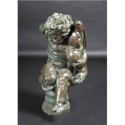 A bronze figural fountain, the naked putto holding a dolphin in his left hand which would spout wat.