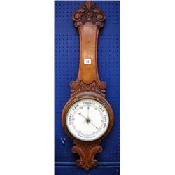 A c1920`s Oak framed Aneroid Barometer, (Thermometer missing).