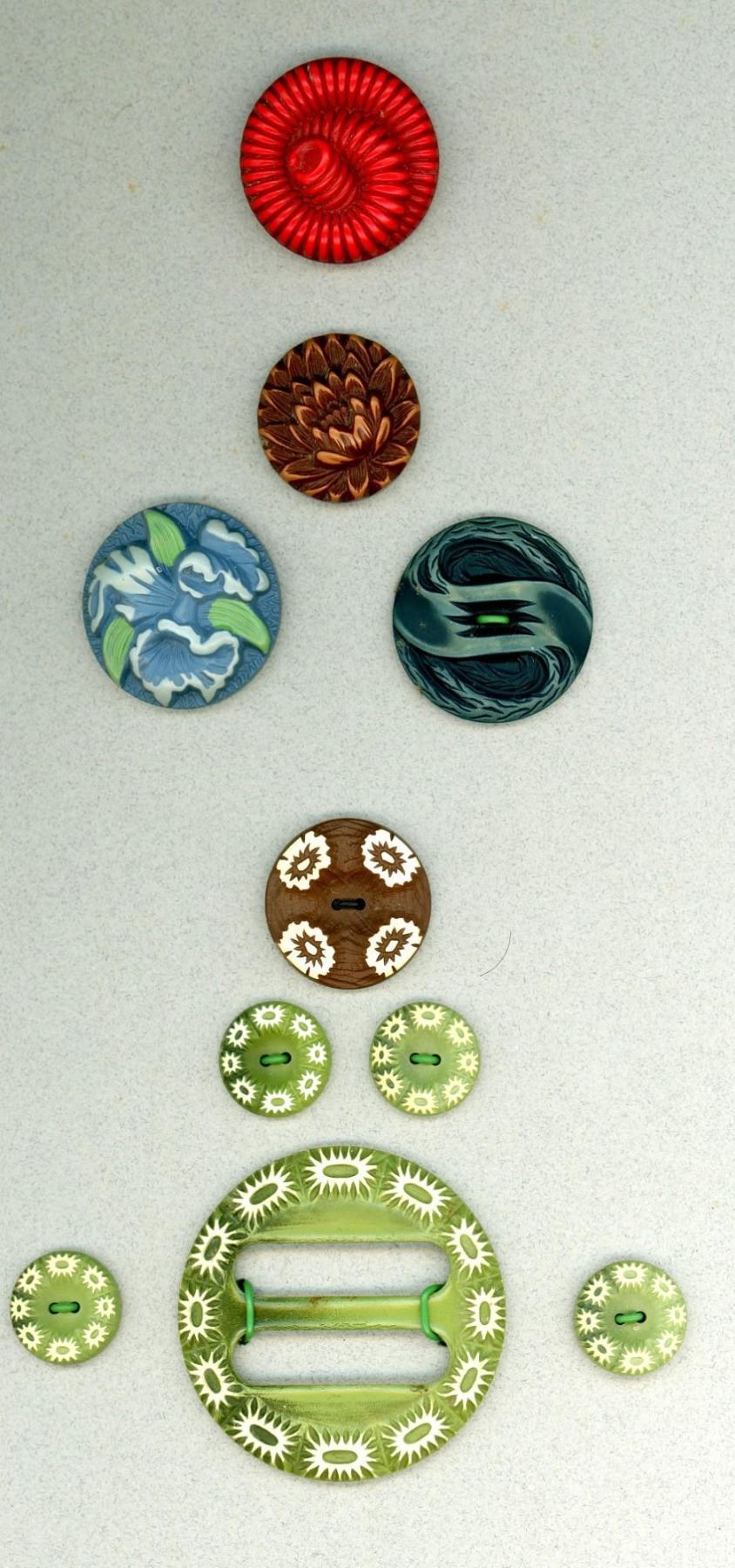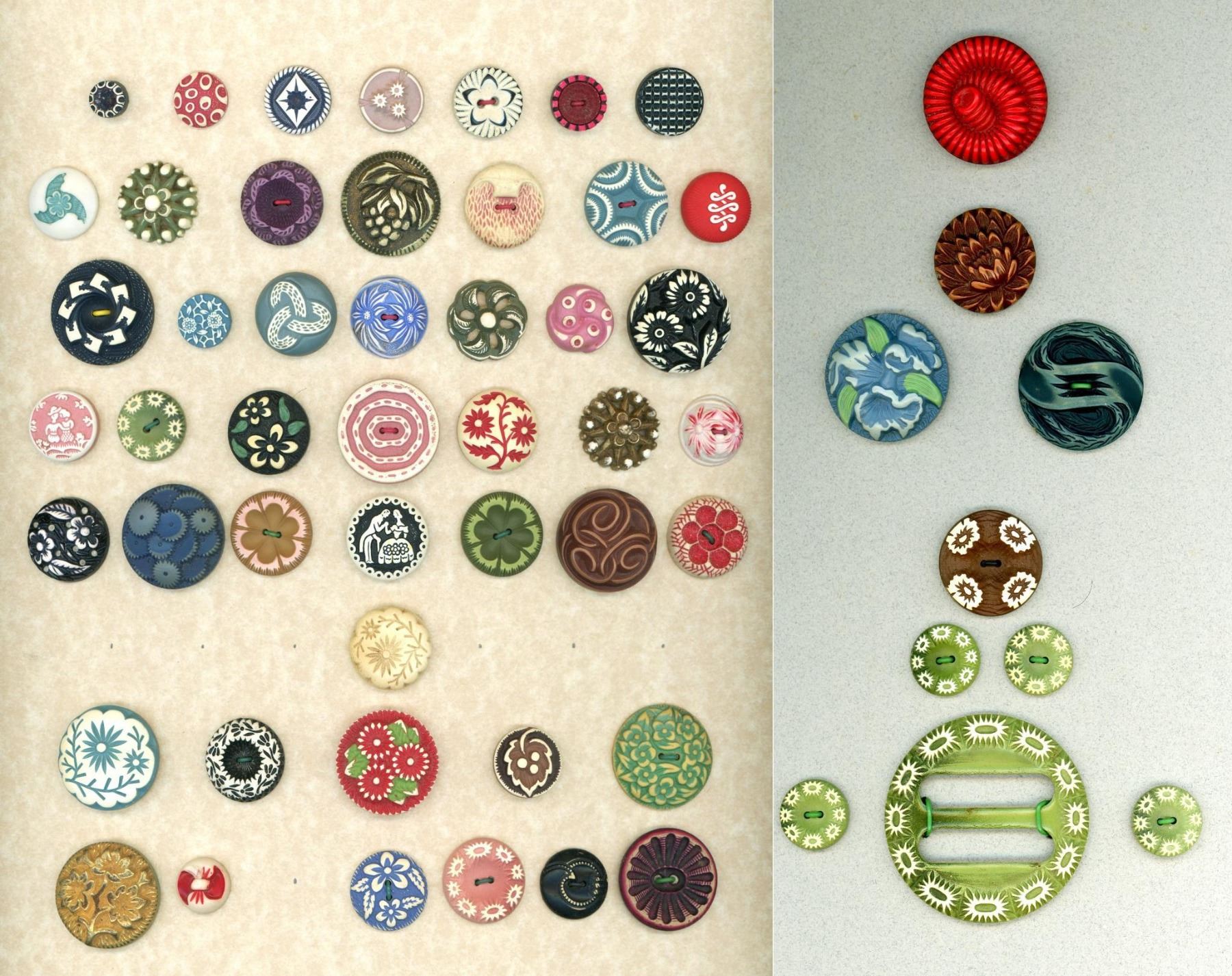 56 S/M/L 20th C. examples specialized to buffed, plus 1 buckle. Here is a wonderful selection of a variety of colors of these Buffed examples including patterns and pictorials.