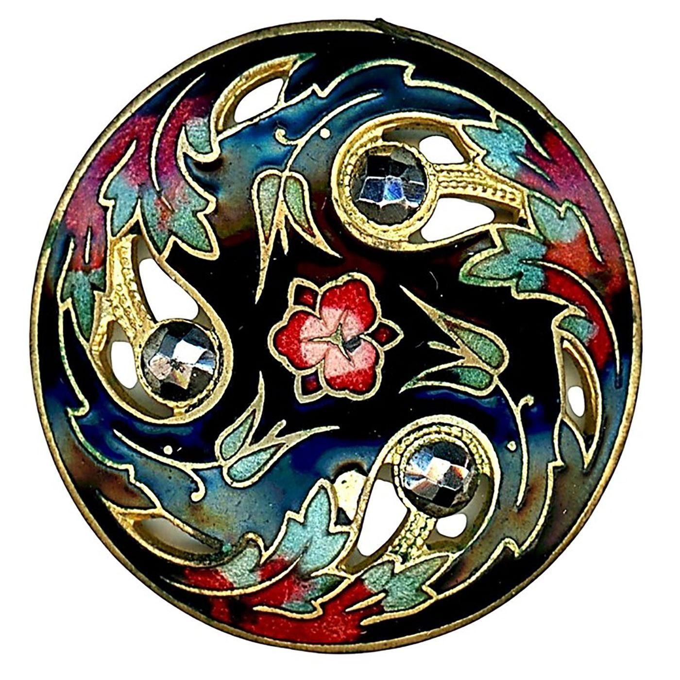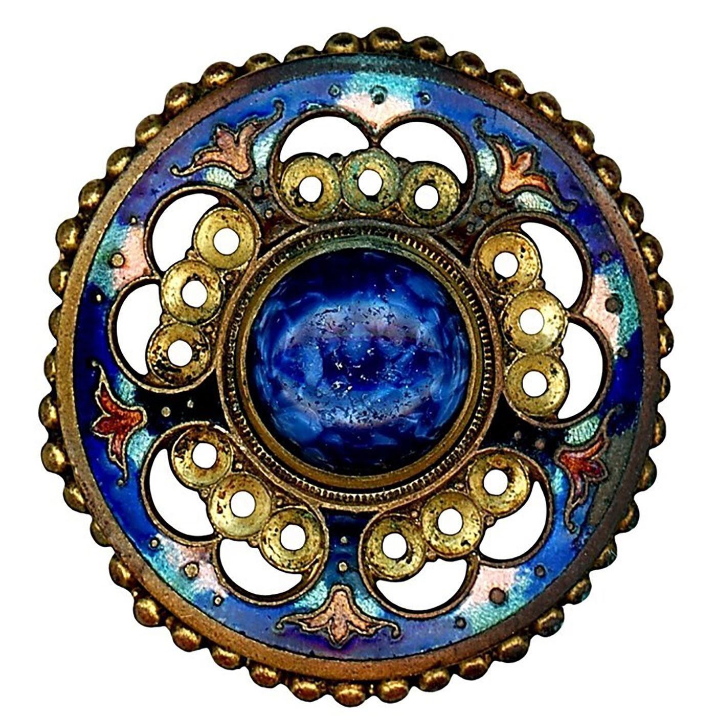 24 S/M/L 19th-20th century assorted techniques and examples. Here is a nice card of enamel buttons including a beautiful Gay 90 style pierced enamel with a blue Lapis center stone, several Champleve enamels, a striking cobalt blue and white enamel reminiscent of the 18th century style ones, a cool colorful Basse Taille man with a sword and dagger, several pierced examples and more.