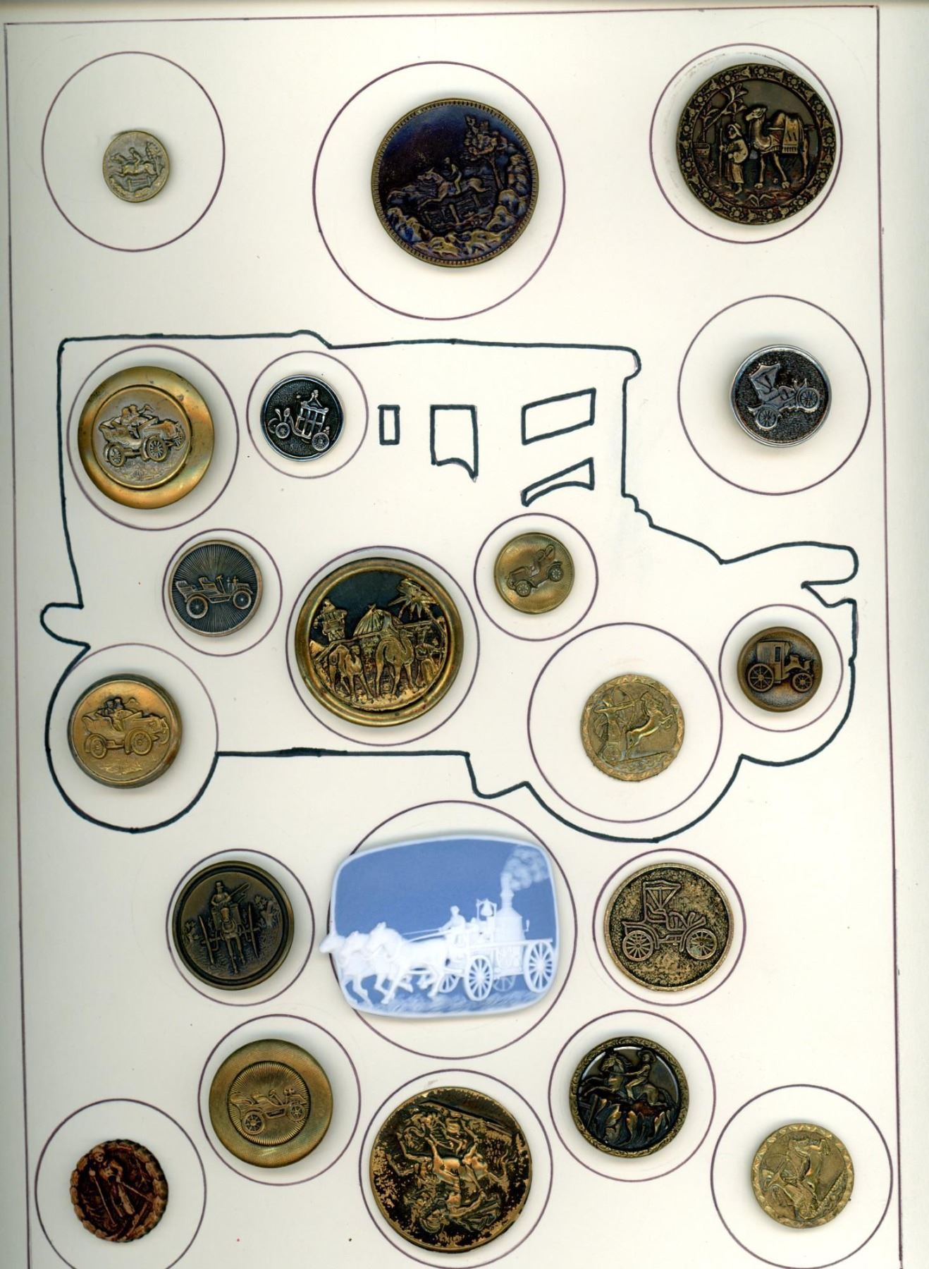20 S/M/L 19th/20th century assorted mode examples. This card includes animal transportation as well as many card examples. The lot includes many metal along with Burwood and Jasperware and more.