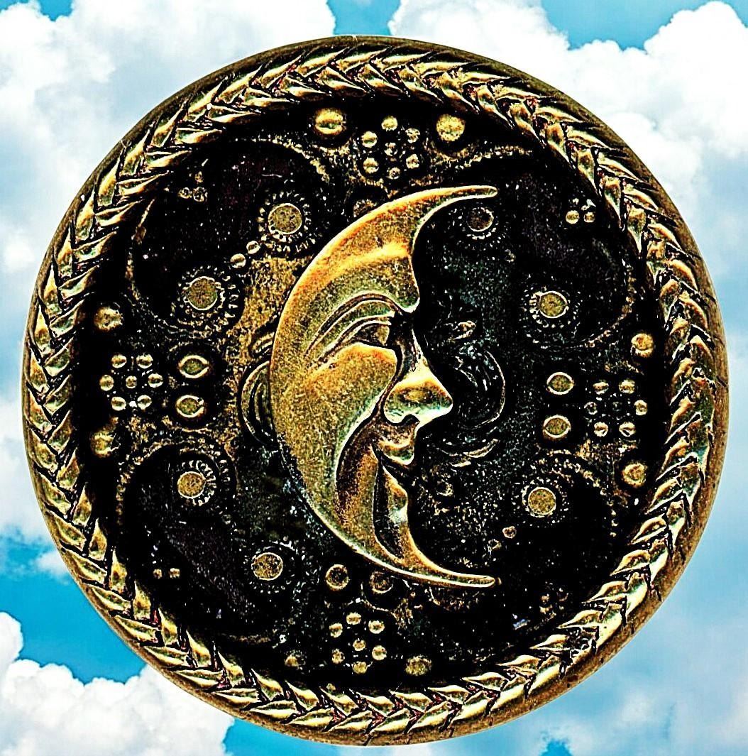 12 S/M/L 19th century brass pictorials including moons and stars. Here is a nice selection of Astrological buttons including Zodiac, Moons and stars and more.