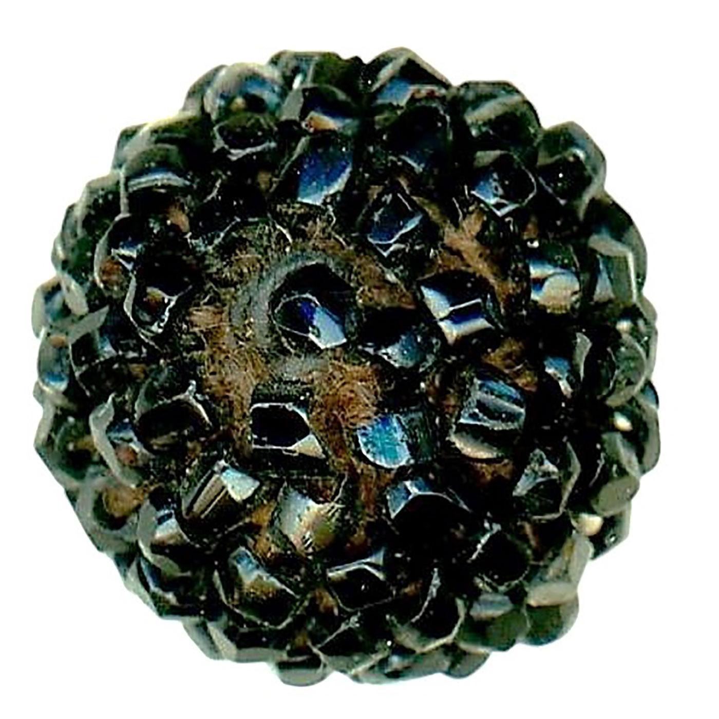 42 Small 19th-20th century assorted material examples. This card of assorted material ball shape buttons includes a nice green Nailsea example, beaded fabric, paperweight glass examples, celluloid, metal, and more.