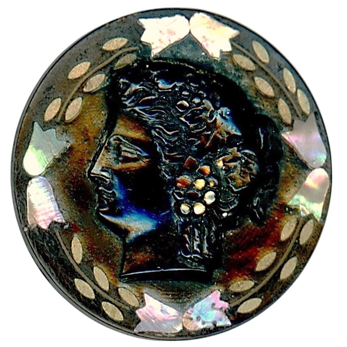 20 Medium/Large 19th-20th century assorted material examples. Here is a nice card of male and female heads in assorted materials to include porcelain, Satsuma, assorted metal, litho, glass, a nice cameo horn with pearl inlay and much more.