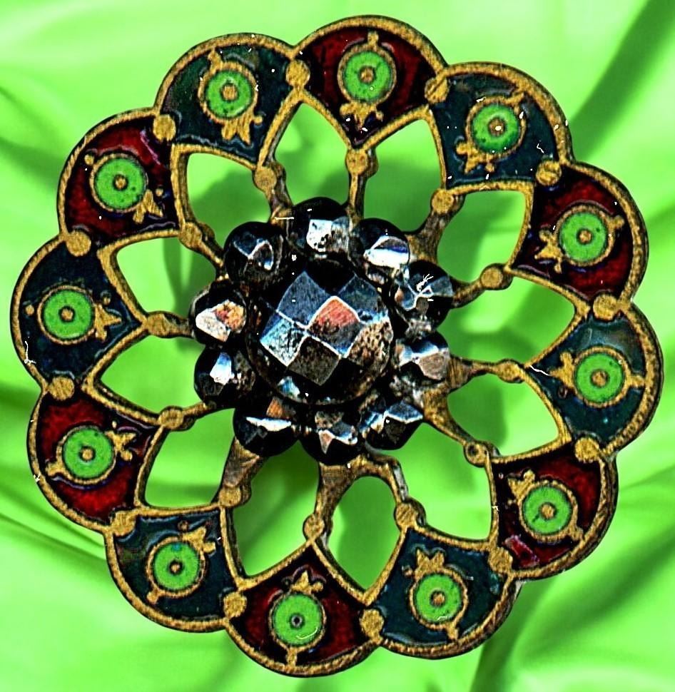 42 S/M/L 19th century assorted techniques in enameling. This beautiful selection includes many pierced, some with cut steel, some pairs or duplicates, several florals and several patterns and much more.