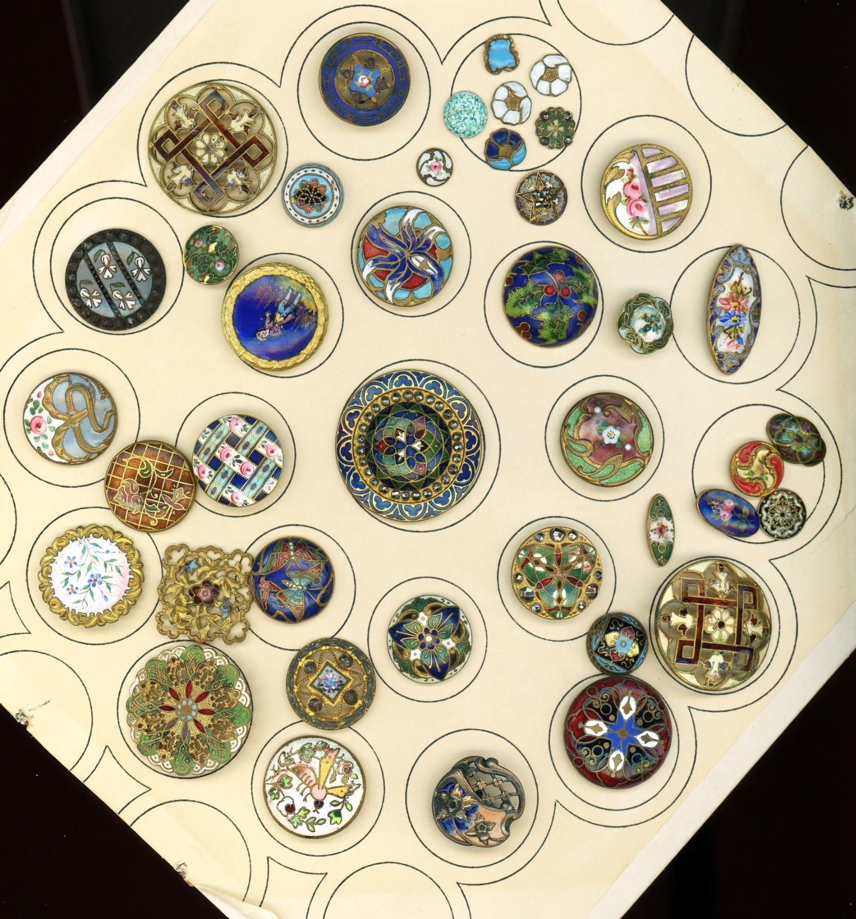 41 S/M/L 19th century assorted techniques in enameling. Here is a stunning card of 19th century enamels including several pictorials. There are several wonderful polychrome enamels, Champleve, lots shapes, and more. Look closely.