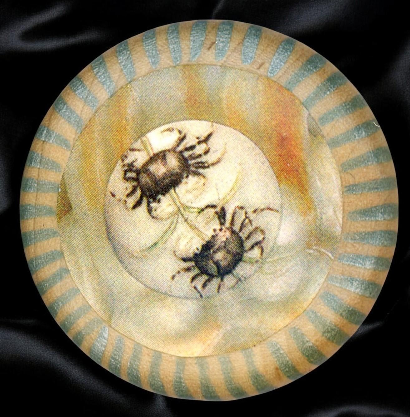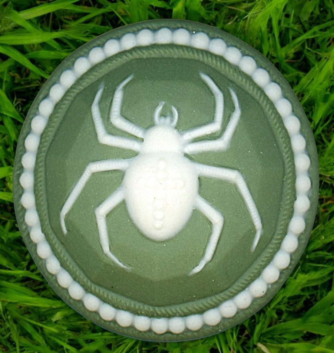 21 S.M/L 19th/20th century assorted material examples. Jos? Roman compiled this cute card of spider buttons mounted on a decorated spider web card. The lot includes, Jasperware, Wood, metals and more. Nice selection.