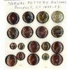 18 Small/Medium19th century Norwalk Pottery examples. These buttons were made in Norwalk Connecticut in the mid 19th century and are Bennington style pottery buttons. This lot includes a couple of different color examples on these pinshanked and non pinshanked examples.