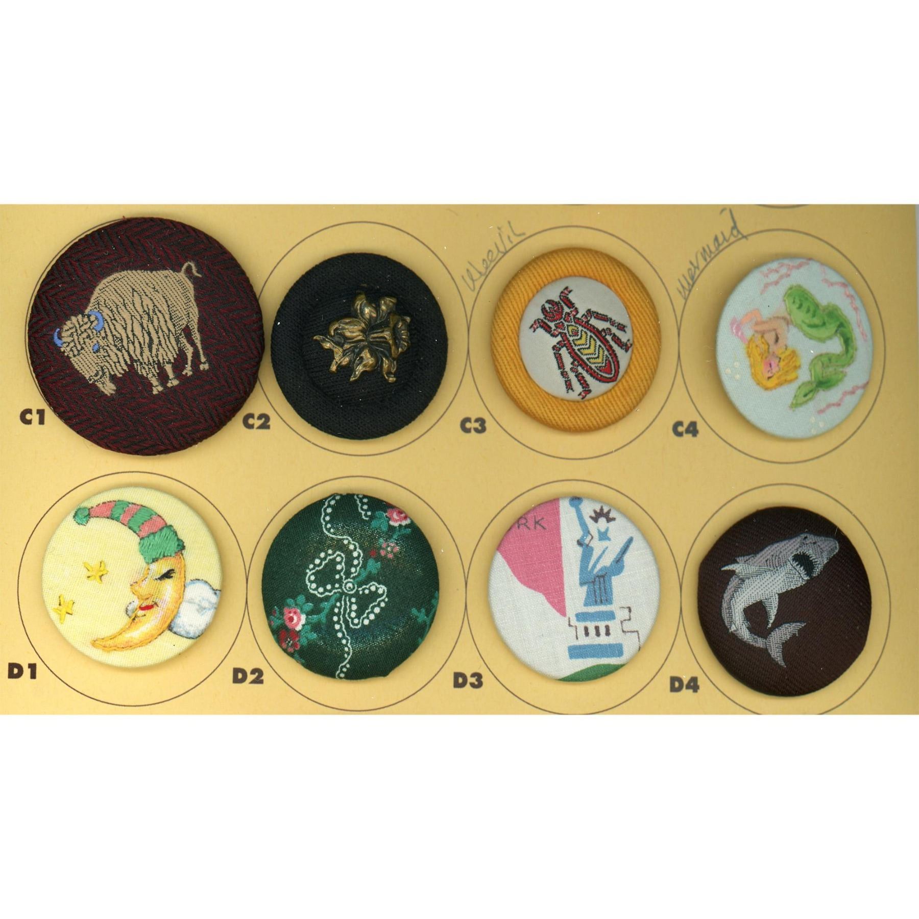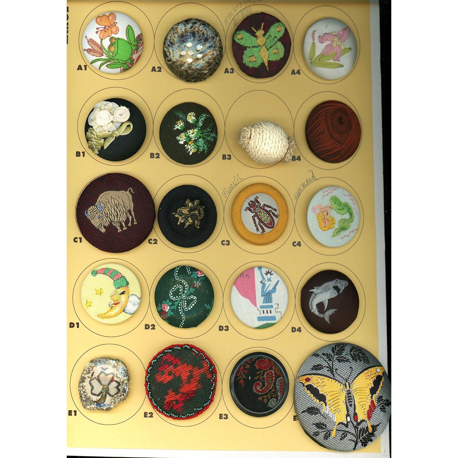 20 Large 20th-21st century mostly pictorial examples. Nikki Deal of Missouri had what we believe the most eclectic collection right down to this card of fabrics in a large variety of pictorials.