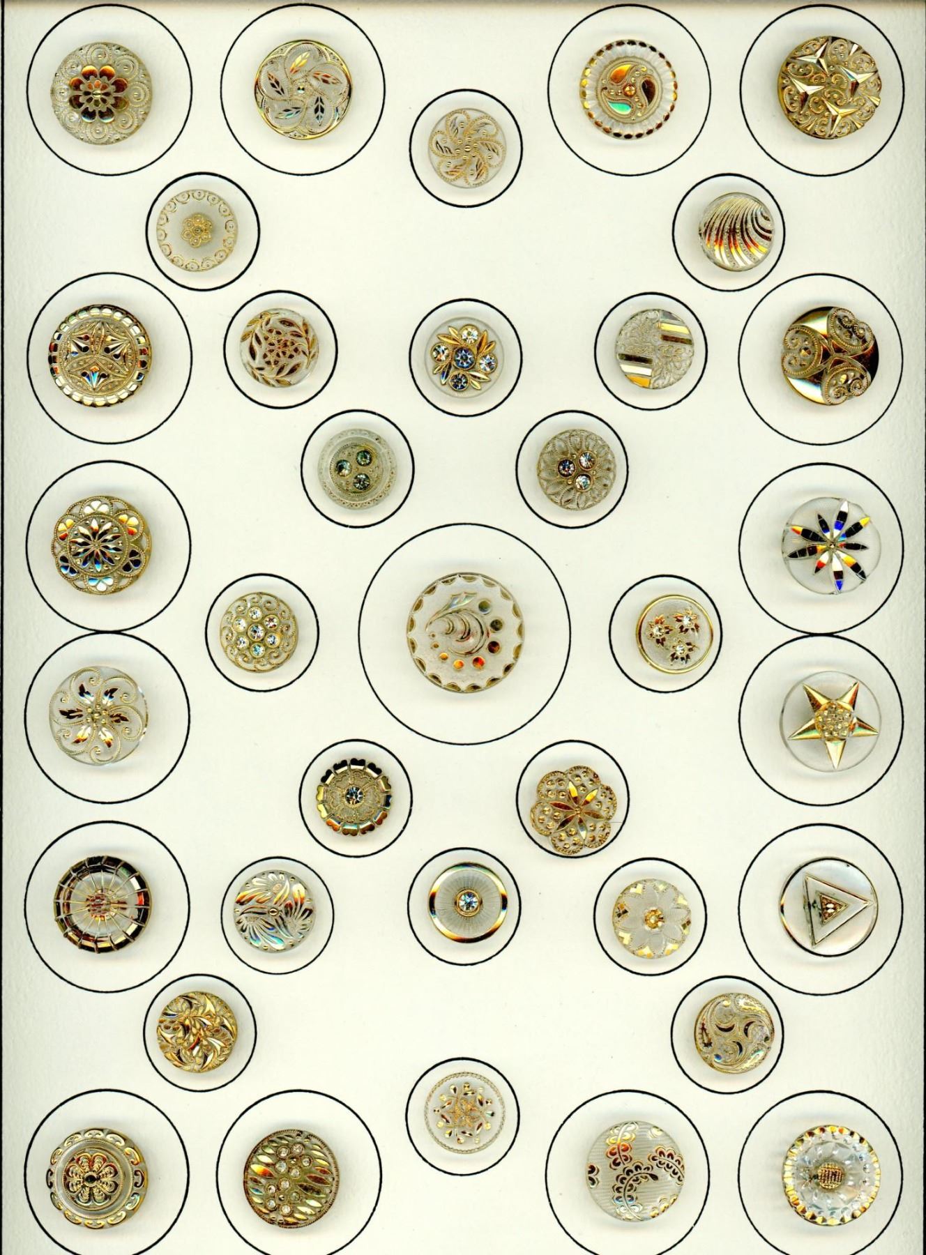 35 Small/Medium 20th century clear glass with gold luster. From the collection of the late Paula Norby. Paula had several cards of these and they are often very desirable among collectors and creators alike.