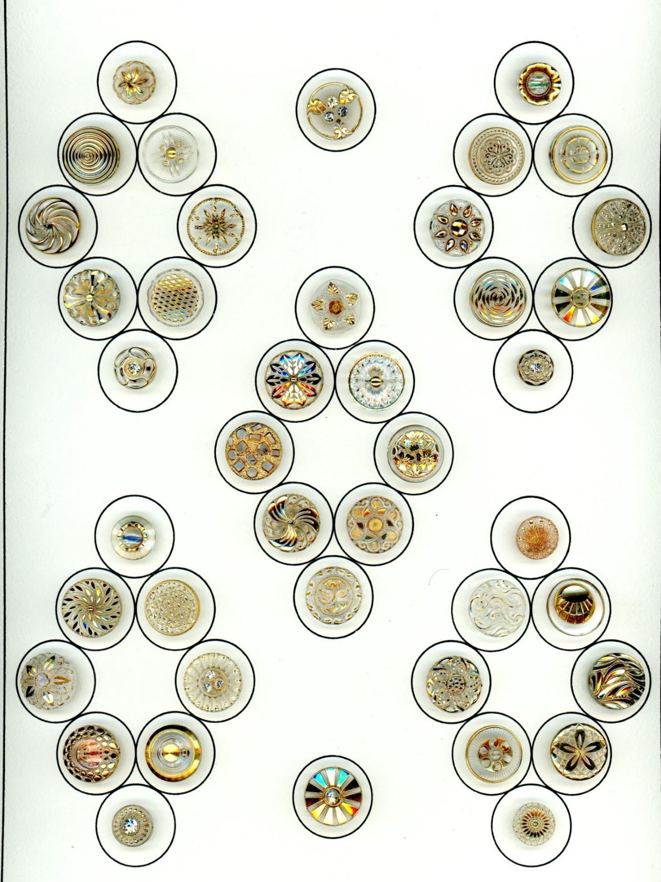 42 Small 20th century clear glass with gold luster. From the collection of the late Paula Norby. Paula had several cards of these and they are often very desirable among collectors and creators alike.
