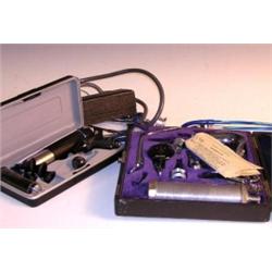 A carton of 20th century medical instruments, to include; cased ophthalmoscopes, stethoscopes, reflexology hammers, blood pressure gauge etc £80-120