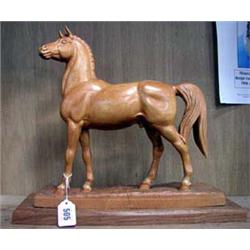 A carved Ash figure of a horse on base, signed F. Lang.