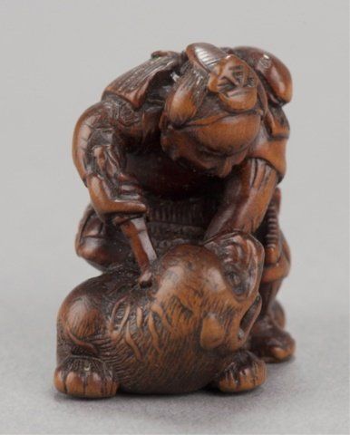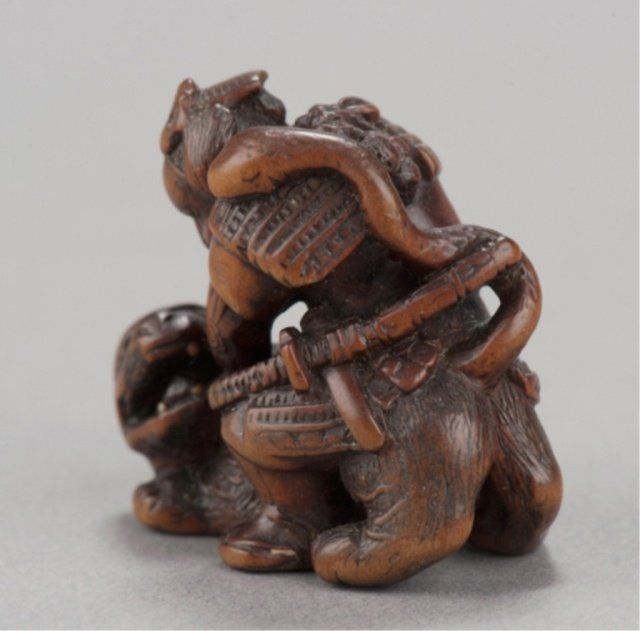 We are able to ship Netsuke from our gallery for this auction. Unfortunately we will not be able to ship any ivory to areas where its import is forbidden by law. Shipping ability and cost is contingent upon destination, insurance, and weight of the package. We charge an additional handling fee of 10/box.