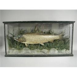 A cased trout, in a naturalistic setting, the back labelled 'Caught in Lough Corrib by Col. G. R. Newton May 28th 1939, weight 8 1/4lb. mounted by Williams & Dames, Dublin', fish 65cm long Est. 150/200
