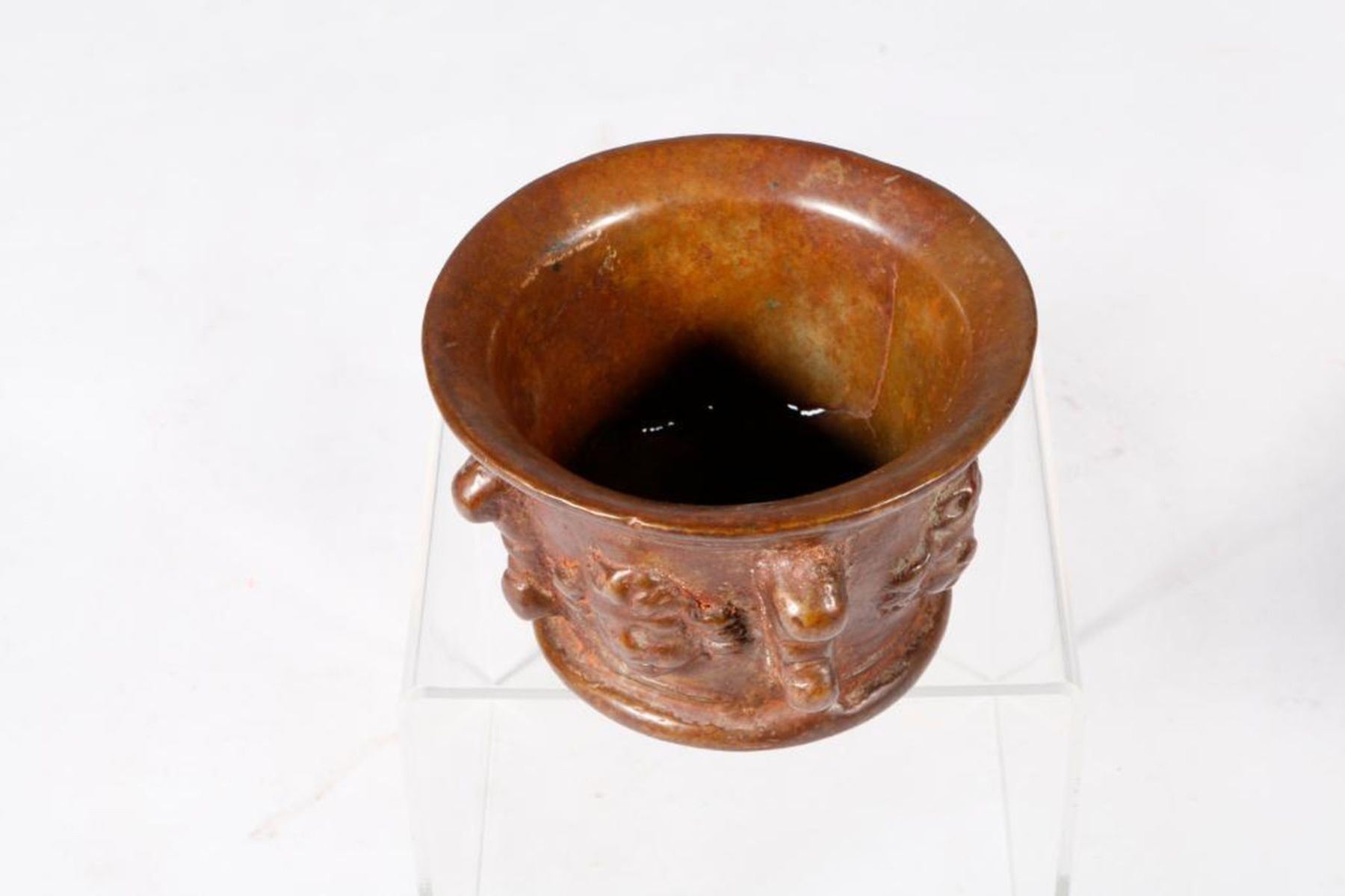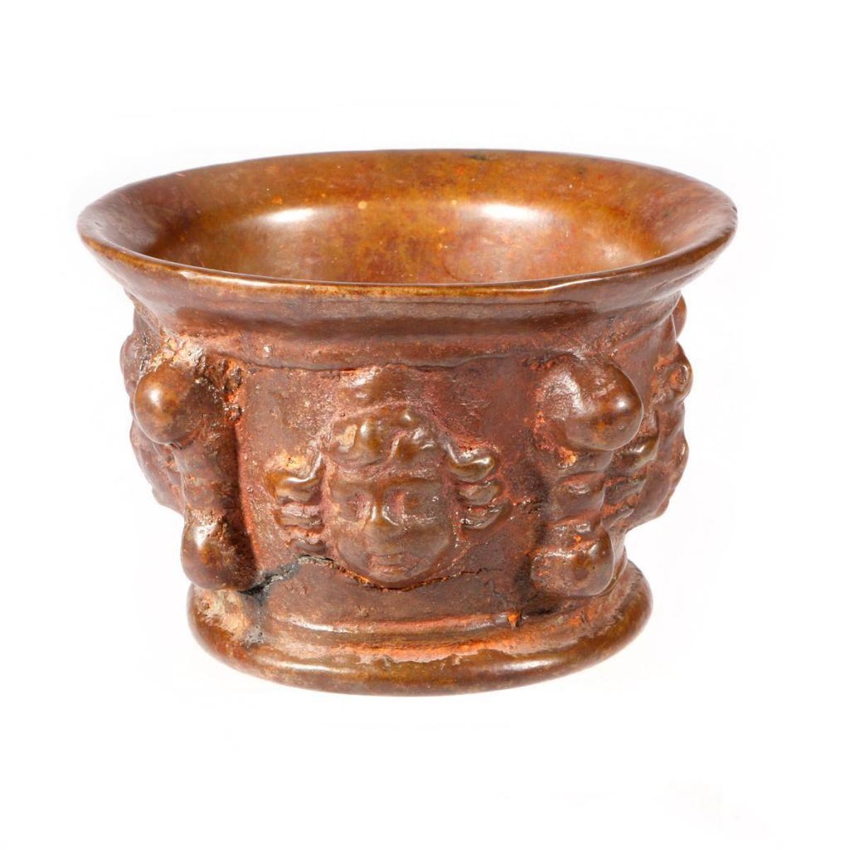 A cast bronze Italian mortar circa 16th century measuring 3 inches high x 4 1/2 diameter.