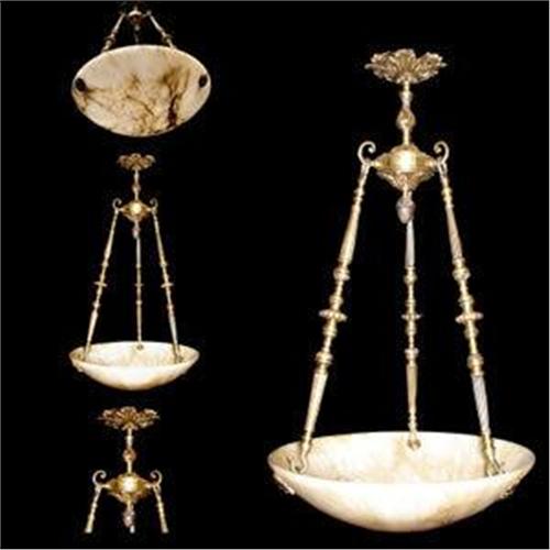 Handcrafted real alabaster stone and bronze was used for this item, glass and plastic supplanted alabaster in the construction of light fixtures. </em></td>
