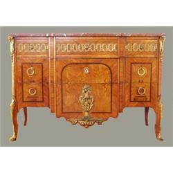 veneered with several types of wood, Louis XVI-style, France, around year 1900, brass fittings, height 93 cm, 130 x 60 cm