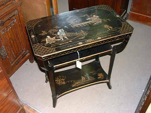 A chinoiserie-decorated and ebonised three-tier occasional table, H 70cms W 65cms £100-120