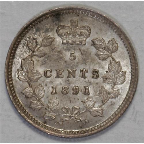 A circulated trio as follows: 5 Cents 1891, lustrous, C