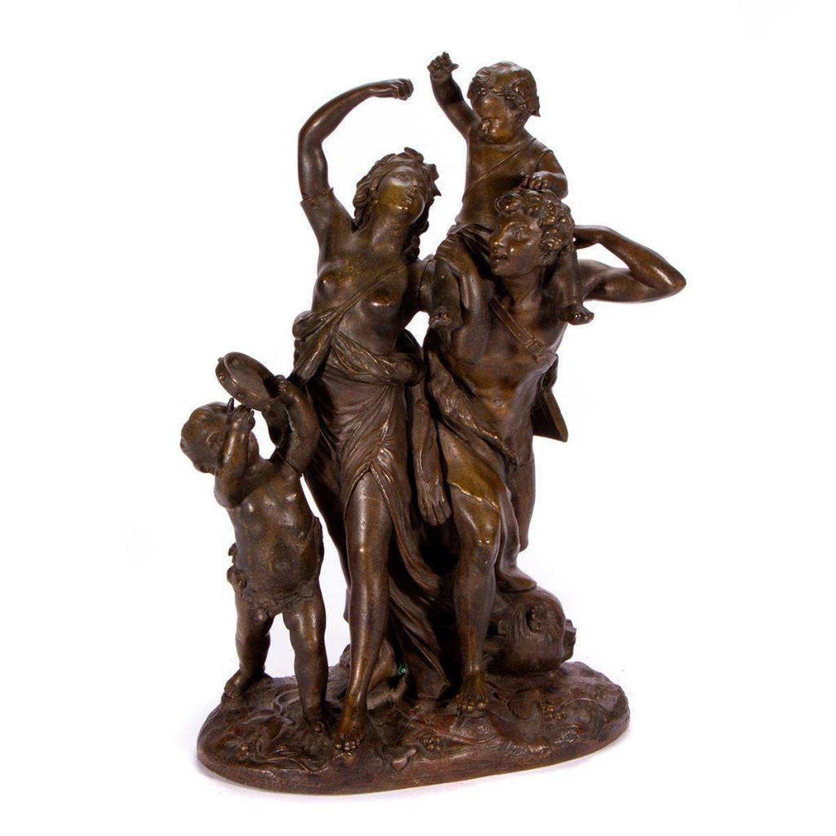 A classical bronze grouping of dancing figures. H - 16" x W - 11' d - 6". Condition: Some looseness, separation and old repairs.