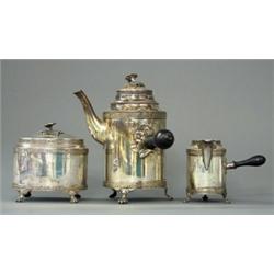 silver, gustavian style, Bernt Erlandsson, Kristianstad 1909, contains: coffee pot, sugar bowl and cream jug, height of coffee pot 22 cm