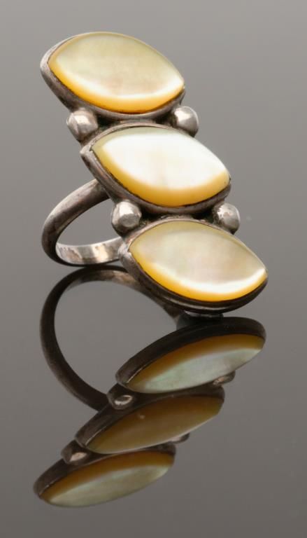 A collection of 8 rings set with a miscellaneous stones including turquoise agates and 22k inlay. Est.: $250-$350.